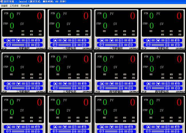 l 可以實(shí)現電爐設備的啟停,工藝下載及保持和手/自動(dòng)調節按鈕。(保持:保持設備現在的溫度不變,未執行完工藝停止執行。手/自動(dòng)調節按鈕:實(shí)現手自動(dòng)切換,手動(dòng)狀態(tài)時(shí)可以由人工自由輸入工藝,自動(dòng)時(shí)則只能有工藝庫下載工藝并執行。手/自動(dòng)切換時(shí)要從新登陸,已備記錄操作人及操作內容。