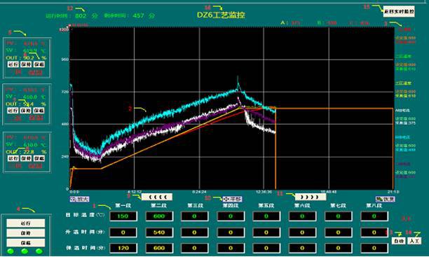 3) 工藝數據列表及實(shí)時(shí)曲線(xiàn)顯示