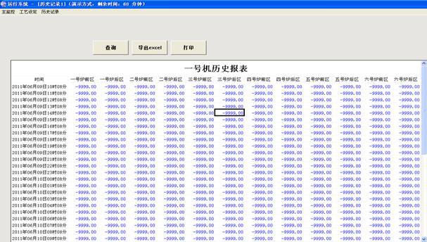 l 以歷史數據表和歷史曲線(xiàn)兩種方式記錄歷史數據,并支持歷史記錄的追憶查詢(xún),歷史記錄可存儲3年或更長(cháng)。歷史曲線(xiàn)縱、橫坐標顯示范圍可調,適用于多種爐溫范圍顯示。
