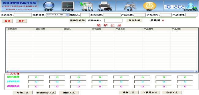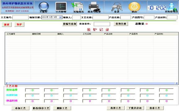 每批產(chǎn)品的編號、名稱(chēng)圖號裝爐時(shí)間、出爐時(shí)間、數量、爐號、工藝代號、工藝員及操作員姓名等自動(dòng)存檔。