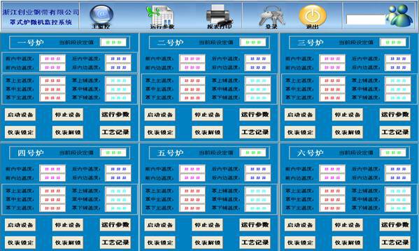 上位機采用工業(yè)控制計算機,主要負責各臺電爐爐溫、運行時(shí)間等工藝參數集中顯示;工藝編輯;歷史曲線(xiàn)、數據記錄、